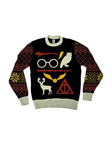 Harry Potter offer Harry Potter Owl Deathly Hallows Sign Black Ugly Christmas Sweater (Adult Large). This awesome product currently limited units, you can buy it now for £38.45, You save -