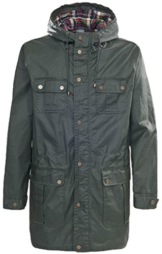 Looking for a cool new casual style? Look no further than the Madwax parka jacket to complete your look on a chilly evening. Designed in a classic parka style with mid length and a grown on hood, this jacket won't go out of style any time soon. The hood is fully adjustable and the cuff and waist have drawcords so you can get a snug fit from the jacket to lock out the cold. With six pockets, you won't be troubled for space with this jacket so you can keep your phone, wallet and other essentials in easy reach and the full zip has a stud fastening flap. The jacket's outside is finished with antique look brass trimmings and the inside has a contrast check flannel lining. Finished with a cool wax effect, this jacket goes great with a range of casual looks and you'll be ready for a day outside in warmth and style.